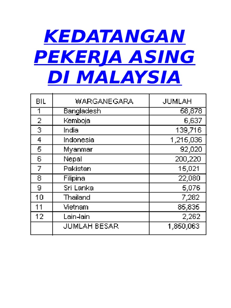 Kedatangan Pekerja Asing Di Malaysia Pdf